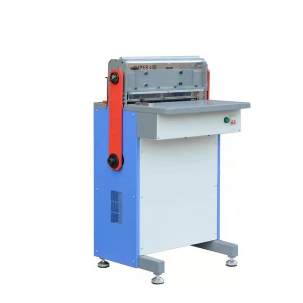 SUPER450heavy duty paper punching machine is a semi-automatic electric paper punching machine which can be used in industry, notebook producing factory ,enterprise and large organizations with firm design.It has advanced motor reducer and special-made mechanical clutch. Motor can run continuously for 24 hours and punching controlled by foot pedal which is easy and safe for operation. Interchangeable die is easy and fast, which can punch various holes.Closing double wire is also available by changing punching dies into closing die and can close any size of double wire. Punching depth margin can also adjustable from 2mm to 6mm which make this machine perfect.